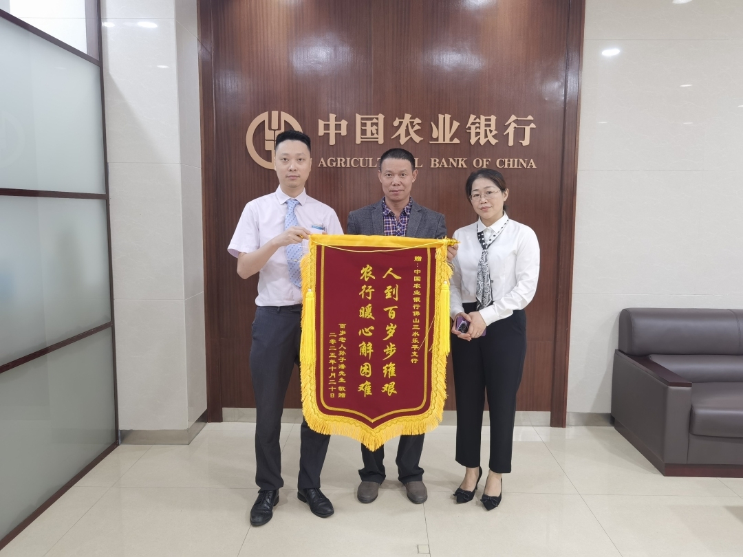 对于行动不便的老年人来说,上门服务成了最大的便利。农行佛山分行辖内所有网点均提供上门预约服务,一般情况下接到申请后3天内即可完成上门服务。今年10月,三水乐平支行负责人和客户经理专程上门为106岁高龄、行动不便的冯阿婆更换第三代社保卡,并耐心讲解新卡功能和安全用卡知识。几天后,冯阿婆的孙子特意送来锦旗“人到百岁步维艰 农行暖心解困难”,表达对农行服务的诚挚感谢。截至10月24日,该行本年度已为老年客户提供上门服务202次。
