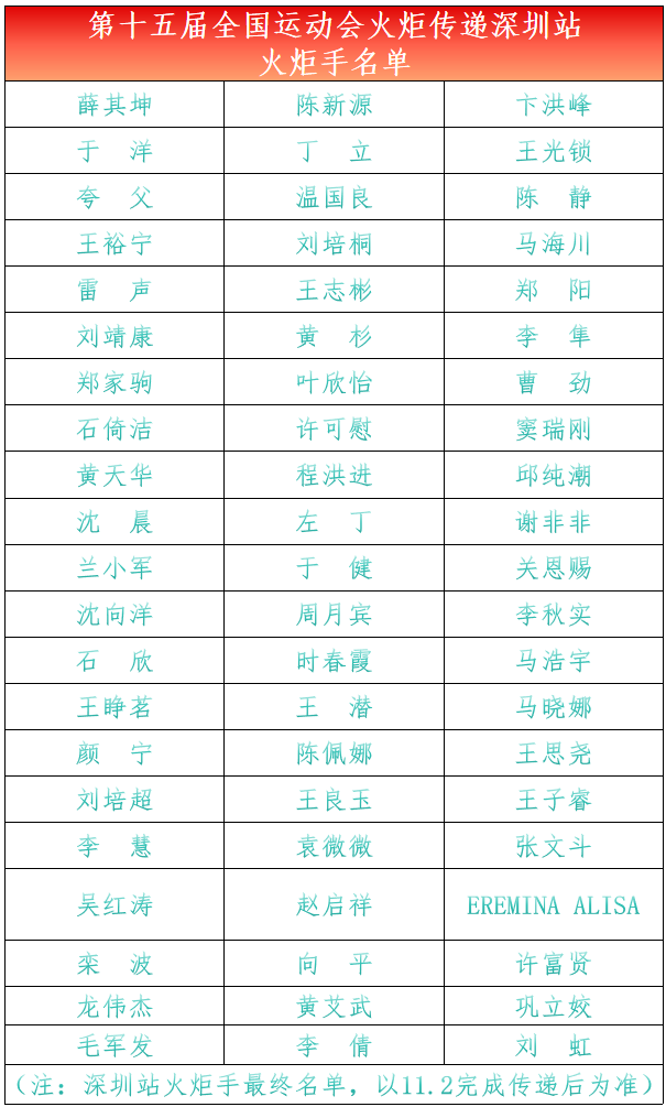 随着11月2日火炬传递的正式启动,这些火炬手将手持圣火,穿越深圳的城市地标,不仅传递着全运会的激情与活力,更串联起各行各业的奋斗图景,让“全民全运”的理念深入城市肌理,让每一份坚守与热爱都被看见、被致敬。