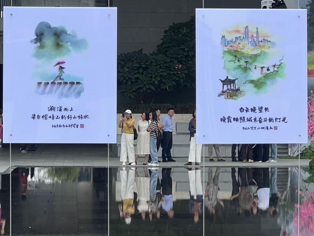 同步开幕的小林漫画白云专题展,则将这61幅白云主题漫画原作集中呈现。小林以幽默细腻的笔触,将白云的山水人文与市井烟火凝于尺素之间,吸引了不少市民驻足,漫画中熟悉的场景引发强烈情感共鸣。