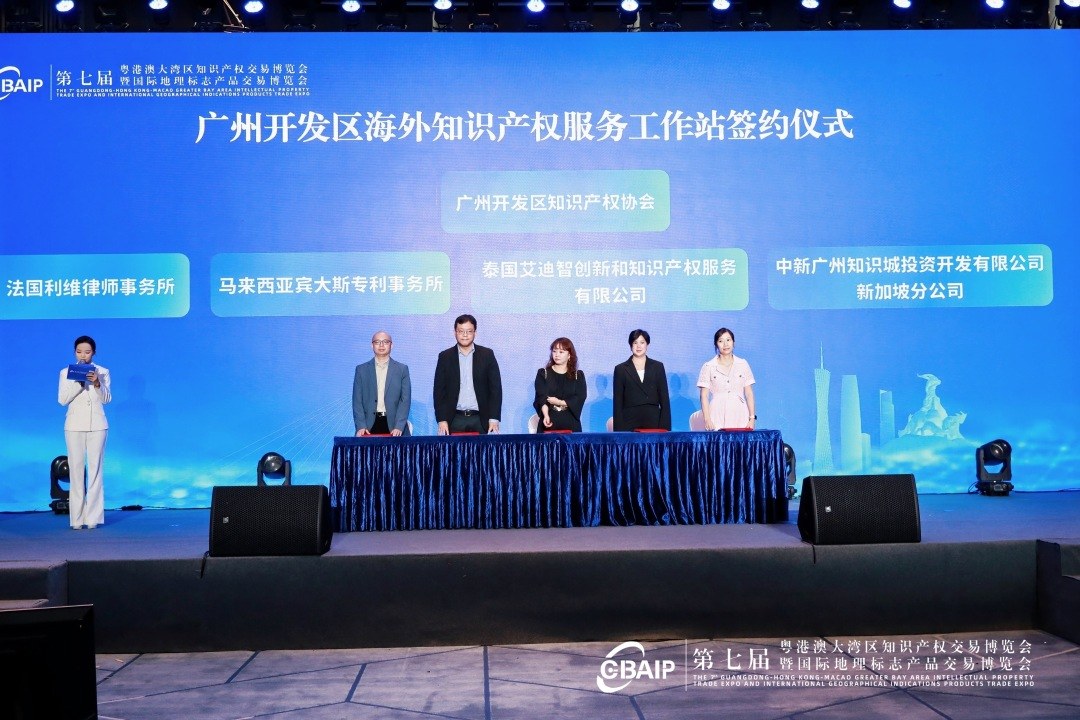 第七届知交会暨地博会期间,举行了广州开发区海外知识产权服务工作站签约仪式以及中新双向知识产权转化运用促进中心揭牌仪式。记者从现场获悉,2023年底,广州开发区成功获评全国首批知识产权服务业高质量集聚发展示范区以来,推动法国、德国、马来西亚、泰国等外国专利代理机构在华常驻代表机构落户开发区。为护航企业出海、助力广州开发区扩大高水平对外开放提供重要支撑,广州开发区知识产权局指导开发区知识产权协会与4家外国专业知识产权服务机构,建设广州开发区海外知识产权服务工作站,为广州开发区企业走出去提供专业高效的知识产权服务。