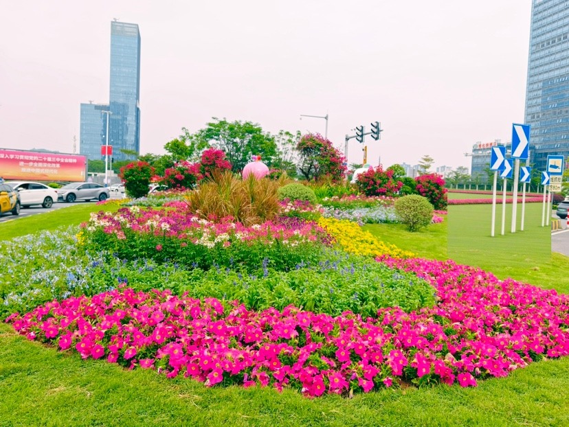 本次时花布置紧密围绕“活力湾区,运动广州”主题,精准聚焦城市客厅与交通动脉。除了在广州南站、广州大学城、万博商务区等重点区域实施绿化美化品质提升外,番禺大道、汉溪大道等城市主干道也开展了重要点位花卉景观布置。