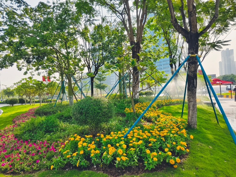 如何让数以万计的花卉在赛期里保持“巅峰状态”?“简单来说,我们就像给植物制定了一张严格的‘开花时间表’。”番禺区城市管理和综合执法局相关负责人用了一个生动的比喻。他进一步介绍,以簕杜鹃为例,技术人员会在目标开花前40-50天进行精准修剪,统一催生新枝;再通过巧妙的“控水施压”,让植物产生危机感,优先将养分用于开花繁殖;最后辅以高磷钾肥“加餐”,确保花量大、花色艳。通过这套组合拳,他们成功引导核心花卉在11月全运赛期达到盛花状态,确保关键区域的花卉盛开率持续超过90%。“我们的目标,就是实现‘无缝衔接’的观赏效果,让‘空中花廊’的盛景贯穿整个赛会期间。”该负责人表示。