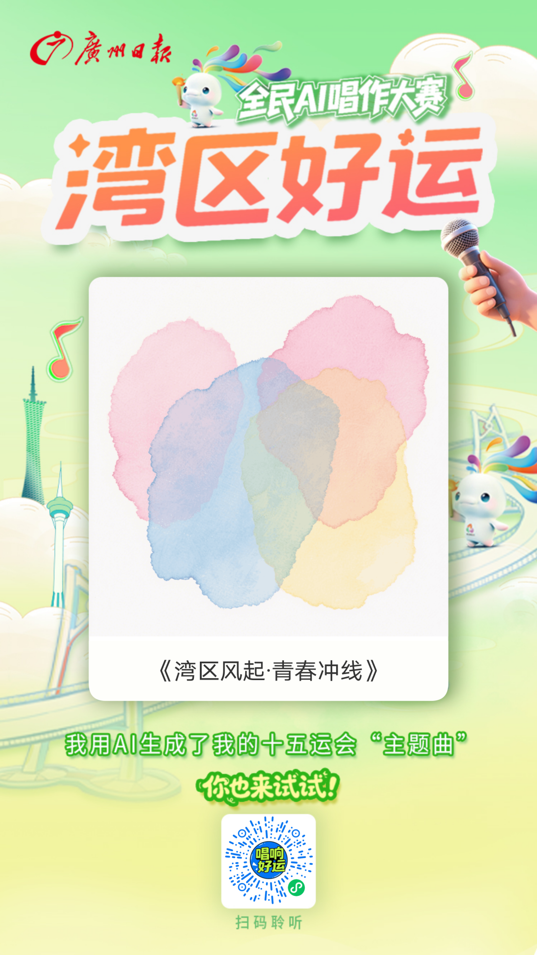 日前,广州日报正式上线“湾区好运”AI音乐创作平台,推出全民AI音乐唱作大赛。连日来,活动吸引了众多网友和高校师生一显身手,国风、摇滚、流行、爵士……一首首风格各异的歌曲在朋友圈热转,为即将到来的十五运会加油助威,为粤港澳大湾区送上祝福。