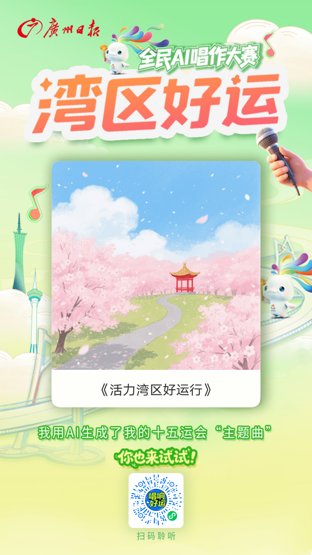 第十五届全国运动会开幕式将于11月9日在广东奥体中心体育场举行,今天距离十五运会开幕还有5天。在这全民期盼、激情澎湃的时刻,我们向所有传播湾区声音、热爱体育运动的你,发出最热烈的邀请:“湾区好运”全民AI音乐唱作大赛作品征集持续进行中!就在此刻,用科技与才华,唱出你的十五运会的“主题曲”!