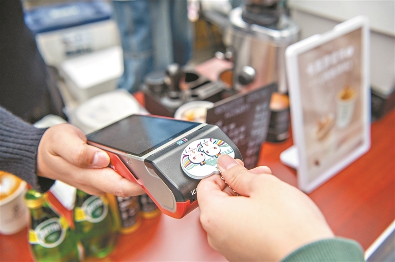 市民使用“文化AR数字人民币硬钱包”消费。广州日报新花城记者 李波 摄