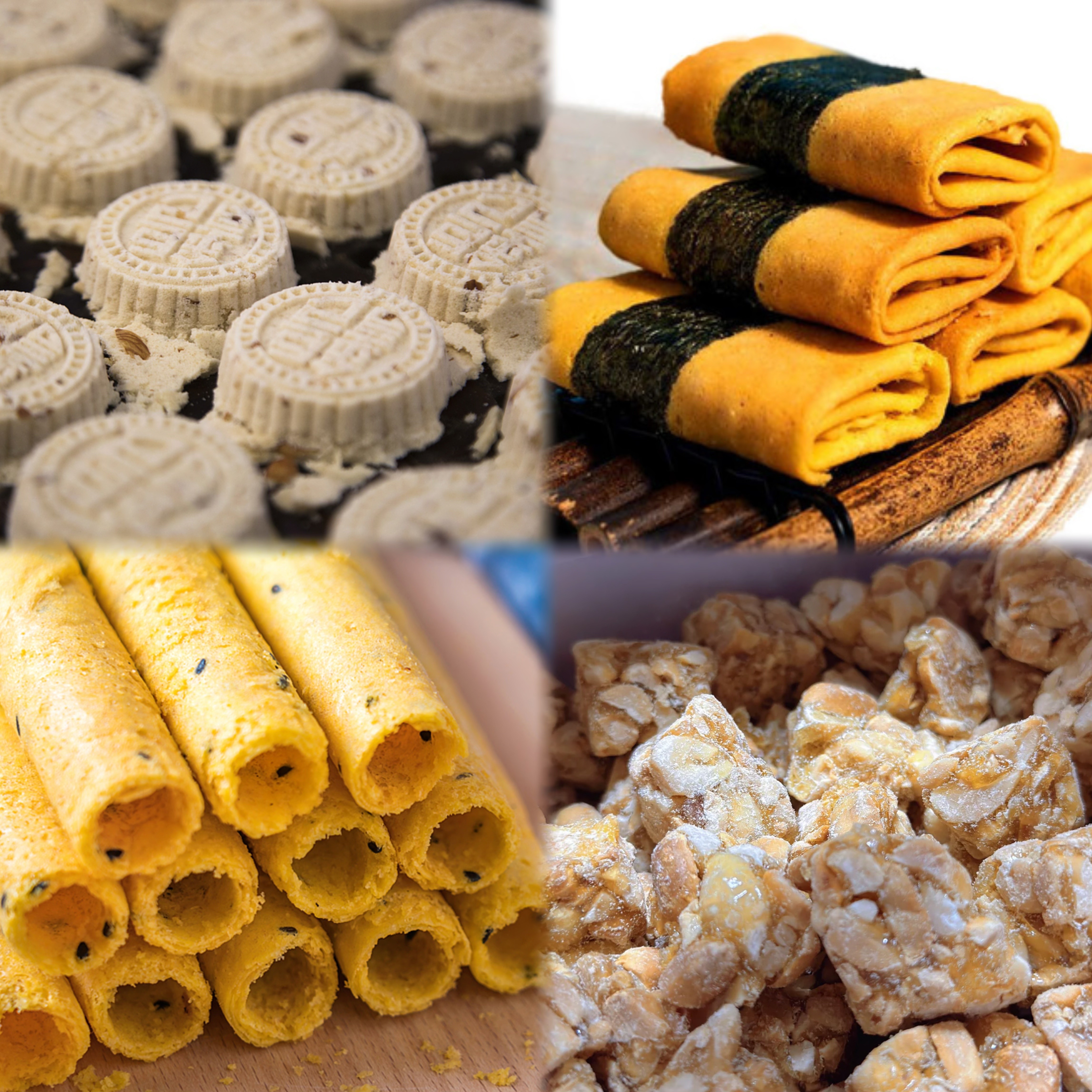 杏仁饼、凤凰卷、花生糖