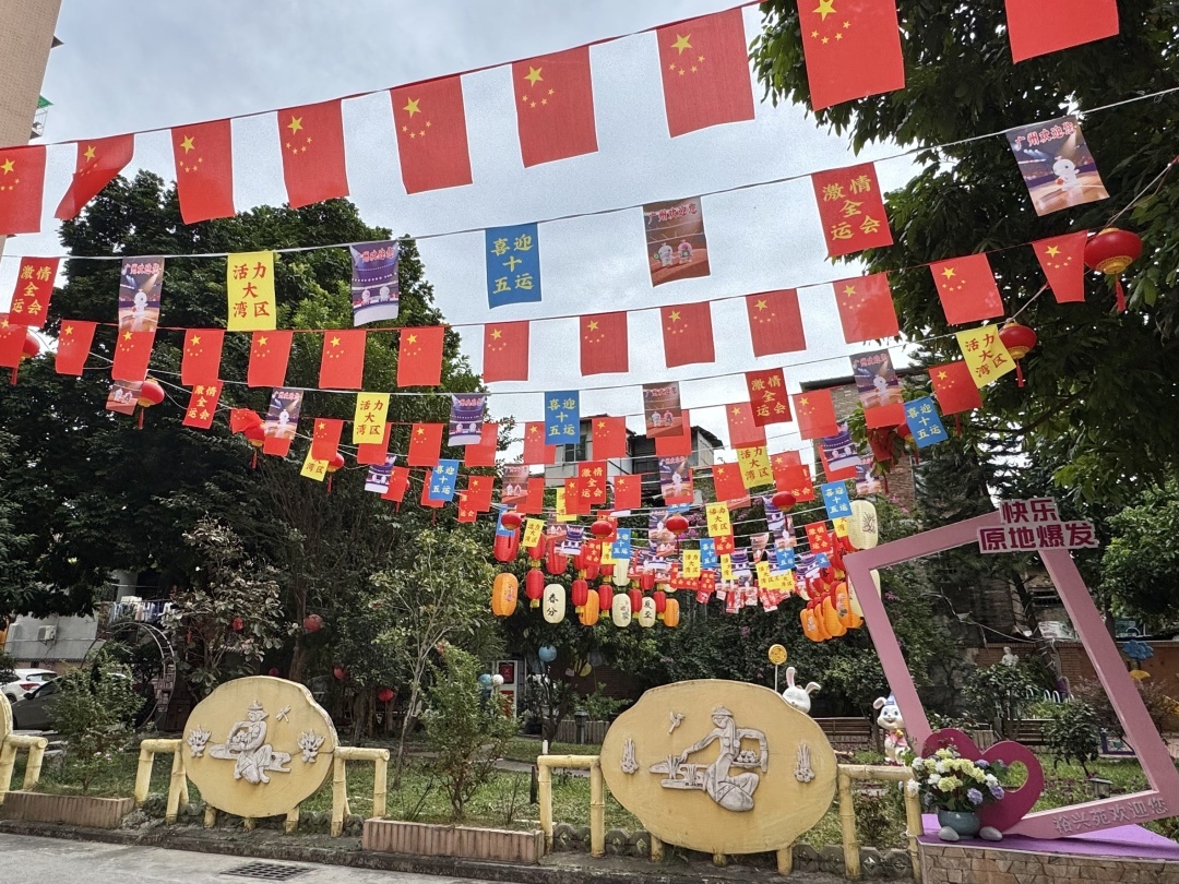 志愿服务也延伸至社区。走进附近的裕兴苑小区,可见一排排带有全运会元素的彩旗飘扬,氛围感十足。“我们积极动员业主以志愿者身份参与小区治理,如环境整治、邻里帮扶等,业委会办公室晚上变身‘居民茶馆’,随时沟通解决问题,现在小区公共事务都有志愿者参与,包括小区为迎接全运会进行的氛围营造,都是大家一起出策出力,形成了‘人人参与、人人尽力’的良性循环。”裕兴苑小区业委会主任程伟良说。