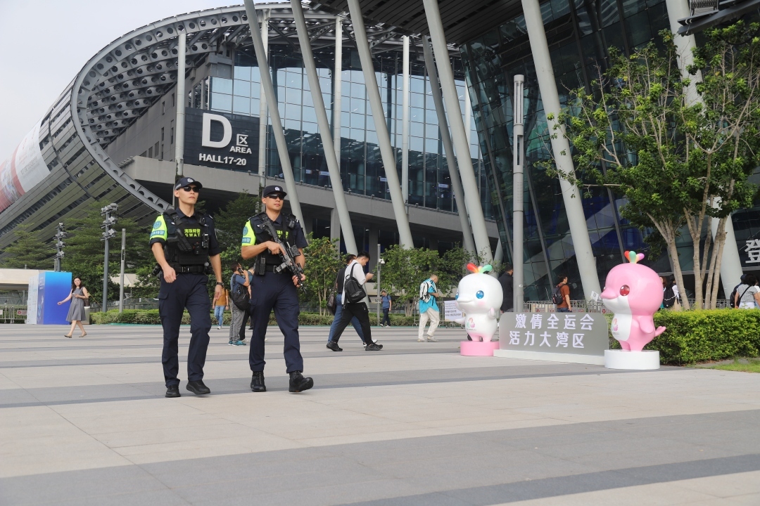 广州警方将广交会现场及外围划分为“三圈四区”安保布局,开展期间日均投入现场安保力量3800余人,全面做好展会现场安保工作。同时,本届广交会广州警方共派出3台机器人、3只机器犬,与特警组成巡防小组,重点时段在展馆重点部位开展巡逻防控,创立“人机协同巡防”新模式;在展馆及周边部署23组处突巡组、9个携犬巡组协同开展武装巡逻,全面提升见警率和震慑力。