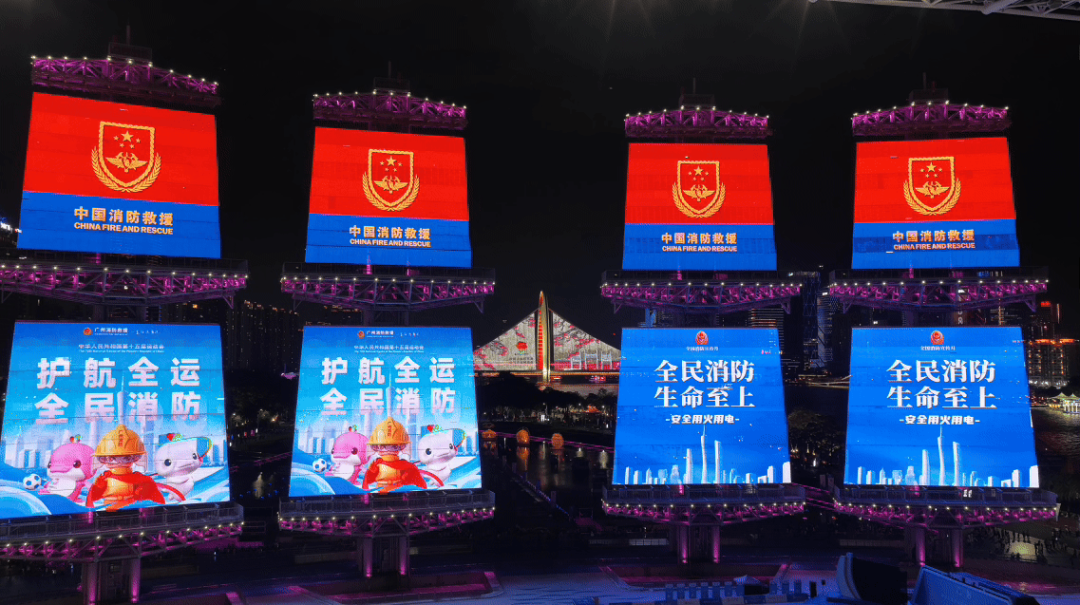 此外,广州塔、猎德大桥、海心沙等地标将点亮“羊城消防主题灯光秀”,全市的交通枢纽、商业综合体、楼宇电视等户外大屏将高频次播放消防公益广告,实现立体式、全覆盖的视觉宣传。