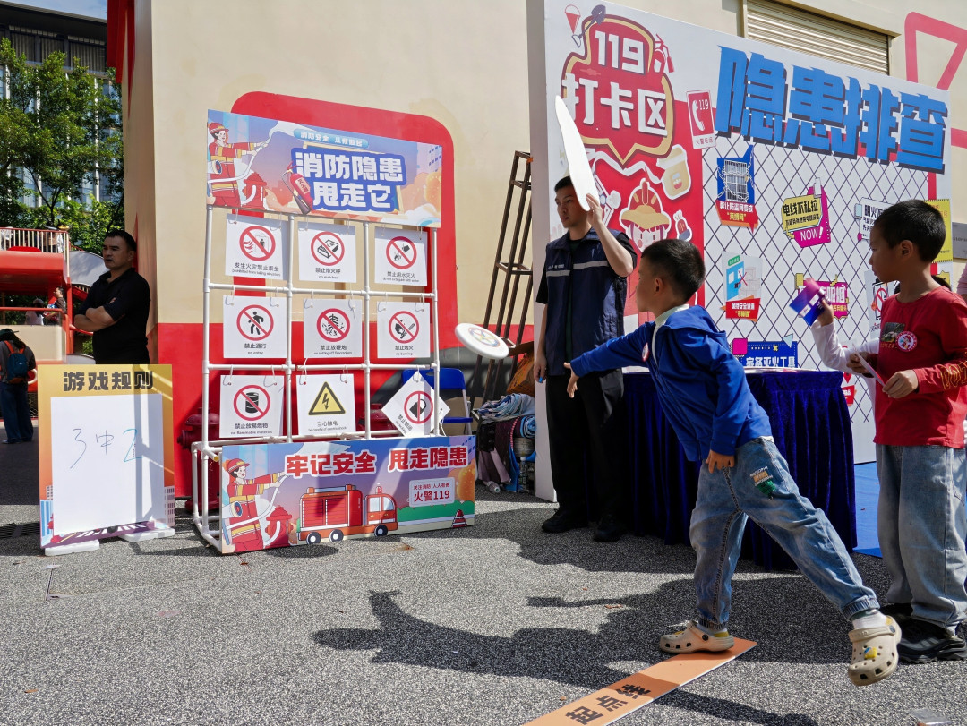 在海珠区,消防救援大队在万达广场设置模拟火灾逃生演练区、家庭烟感试验区、锂电池安全展示区等互动区域,市民通过实物演示和亲身体验,直观了解火灾预防、初期火情处置等知识。