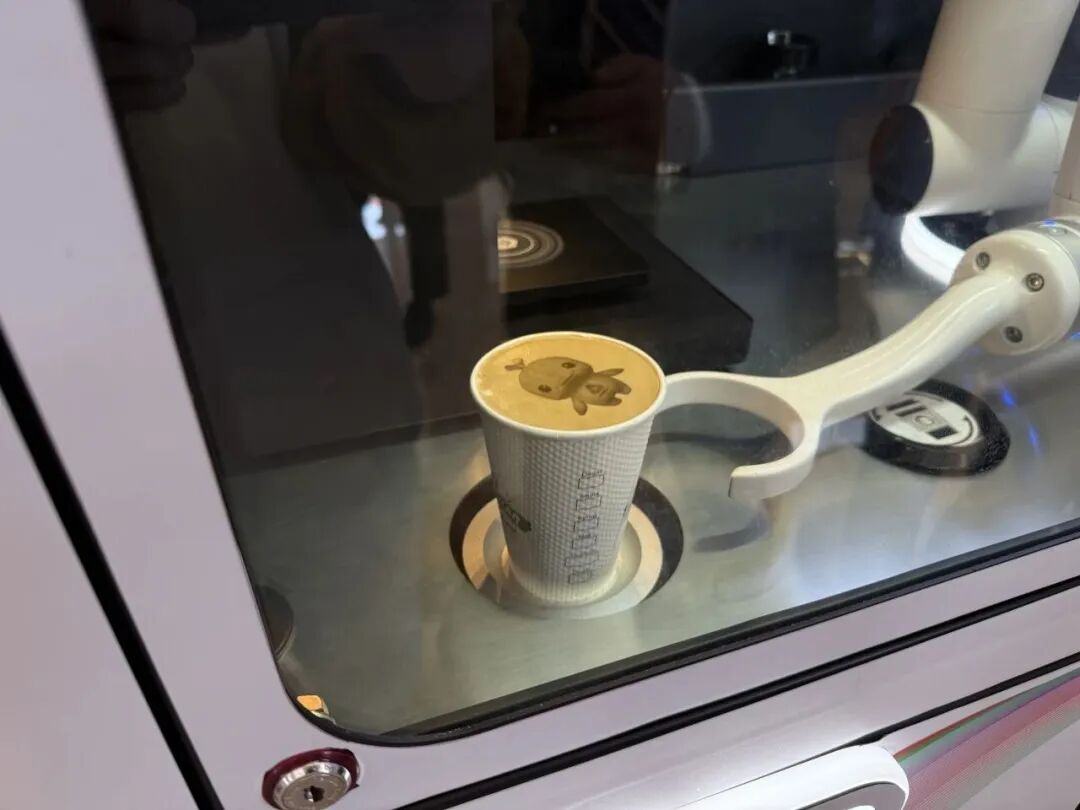 通过深度学习,机器人能掌握上千种饮品的制作方法,并能瞬间完成新配方的全球同步更新。用户不仅可以自定义甜度、冰量,还能上传图片,让机器人将其转化为杯中的可食用拉花。