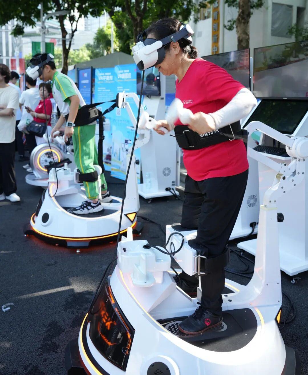 据介绍,VR平衡车采用载具式设计,完美复现飞行时的失重俯冲、滑雪时的重心倾斜、水上运动时的波浪颠簸等真实运动姿态;履带式VR万向跑步机,则告别传统跑步机固定轨迹、转向卡顿的局限,还原真实行走和跑步的移动方式;VR椭圆机配备智能阻尼调节系统,能根据虚拟内容的场地特性调节脚踏阻力,确保最真实的骑行模拟。