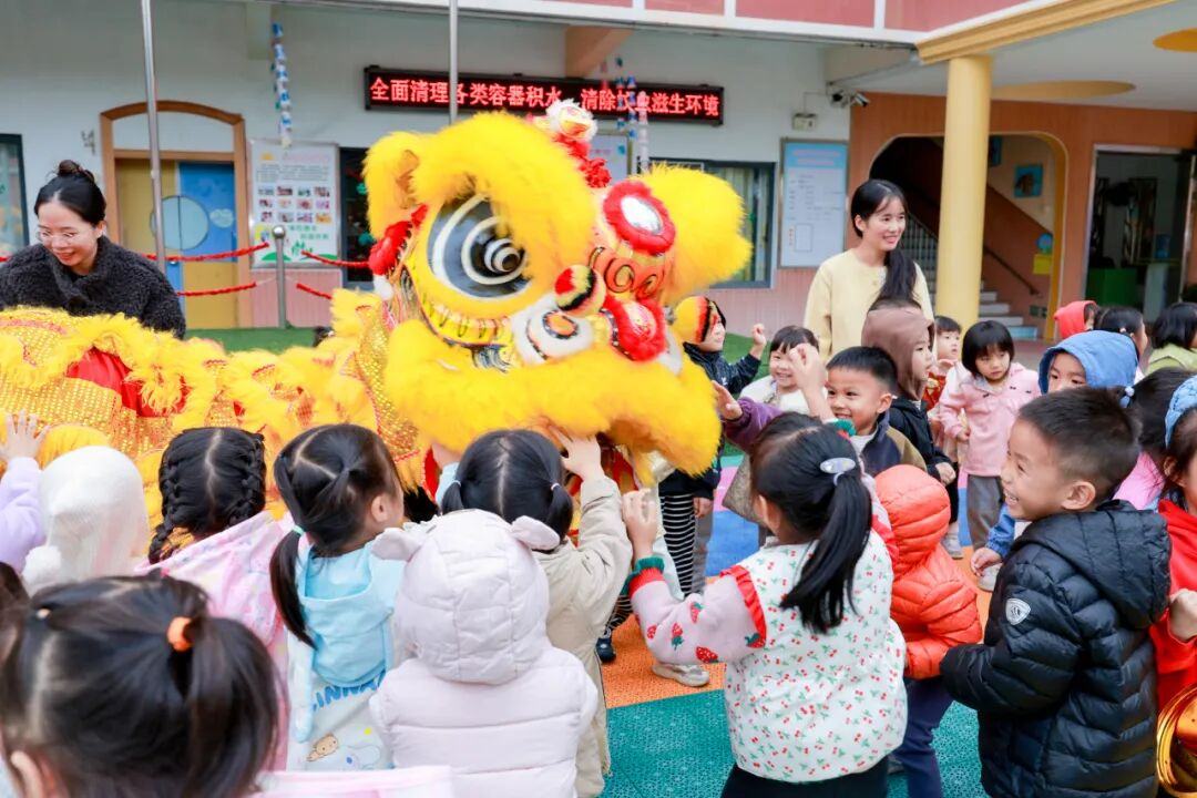 活动现场人声鼎沸,场面声势浩大,不少村民群众簇拥在巡游队伍两旁,沉浸式体验节日氛围,争相摸狮头、接福气,讨个好彩头,共同祈求国泰民安、幸福美满。