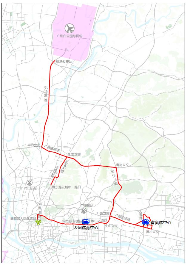 连接广州白云国际机场与驻地酒店的专用车道启用时间为2025年11月6日至11月20日、12月5日至12月14日,每日7时30分至19时30分。