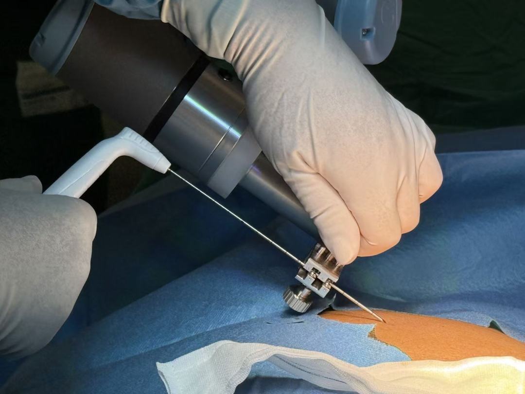 “伤口不痛,手术后很快我就能下床活动了!”近日,回到中山大学附属第一医院(以下简称“中山一院”)复查的患者方叔开心地说。方叔是一位甲状腺癌肺部转移的患者,近期在中山一院接受了“肺部左侧转移灶消融+右侧转移灶切除”手术,术后创伤疼痛少、恢复快,走起路来精气神很足,这主要得益于专业团队+新型国产经皮穿刺机器人的配合帮助。