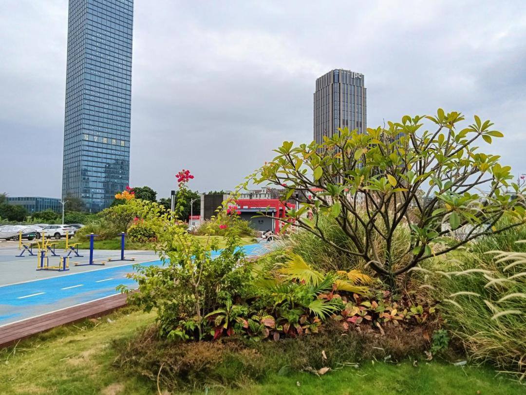今年上半年,鱼珠街道党工委决定将旧商铺进行清拆,将该区域改造为集生态、休闲、健身于一体的口袋公园。如今,公园内绿意盎然,配备多种健身器材和开阔的运动空间,并建有图文并茂的休闲长廊,生动展示海丝城规划发展的历史脉络与未来蓝图,让居民在休憩中感受区域发展脉动。