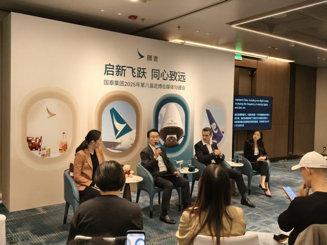 “我们始终对内地市场的发展充满信心,未来将继续依托‘植根香港、背靠祖国、联通世界’的独特定位,加大航线网络拓展、运营效能提升及数字化创新领域的投入力度,深化与合作伙伴的协作,为中国与全球的经贸往来和文化交流创造更大价值。”在第八届中国国际进口博览会上,国泰集团以“启新飞跃 同心致远”为主题第三次亮相进博会,携旗下尊尚旅游、低成本航空、高效货运及生活品味四大核心业务板块同台呈现,在国泰集团发展愿景和参加进博会的原因时,国泰中国内地董事郑家驹表示,进博会是推动全球合作与高水平开放的重要平台,国泰集团连续三年参展,这不仅为集团搭建了全方位展示成果和优势的窗口,更为深化内地布局注入了强劲动能。