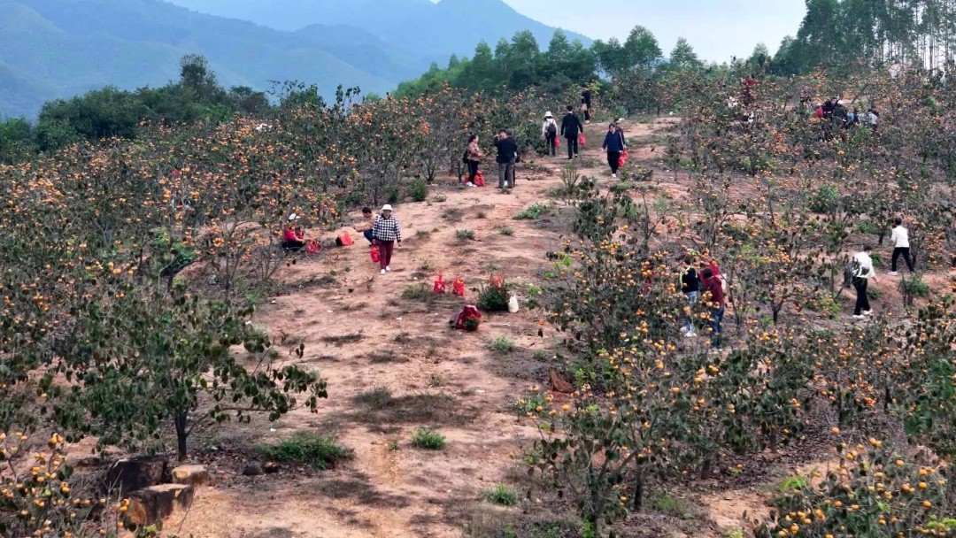 “太壮观了!这趟来得真值!”来自曲江旅游团的导游谭春娣一边招呼着她的53名团员,一边难掩兴奋之情。“我们团已经是第二次来了。这里的交通很便利,柿子品质又好,大家在山水间自由采摘,玩得比谁都开心。”她的话语里,满是对这片土地的熟稔与喜爱。