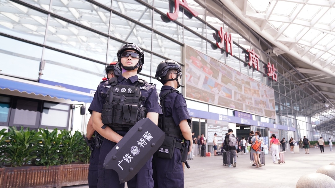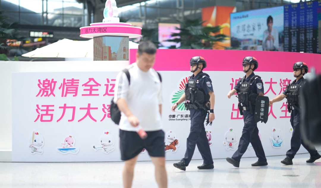 针对赛事期间客流特点,广州铁路公安处构建“全域覆盖、动态管控、快速响应”的立体化防控体系,坚持显性用警和武装震慑,切实提高见警率、管事率、管控力。其中,在广州南站、广州白云站等重点枢纽车站,优化“定点值守+流动巡防+便衣巡控”警力配置模式,加强对车站进出通道、重点部位疏导管控,进一步提升旅客出行安全感。