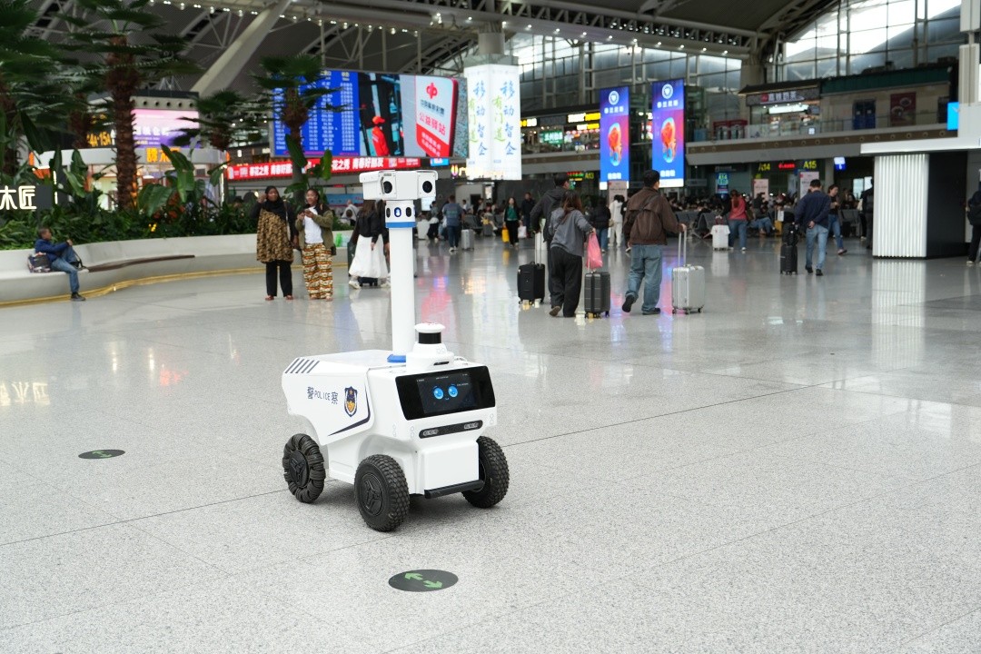 记者了解到,为提升服务效能,广州南站派出所协调在东平台增设旅客问询服务点,主动做好运动员及器械转运的现场秩序维护,展现温馨、专业的窗口形象。另外,引入的新一代警用巡逻机器人也已投入广州白云站、广州南站使用,兼具全自动巡逻、AI智能预警、远程接警及安全宣传等功能。