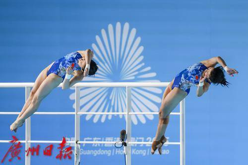 11月6日晚,十五运会跳水女子双人10米台决赛在广州奥林匹克体育中心游泳馆举行。最终,预赛排名第一的陈芋汐/掌敏洁组合夺冠,预赛第三的全红婵/王伟莹组合获得第五名。