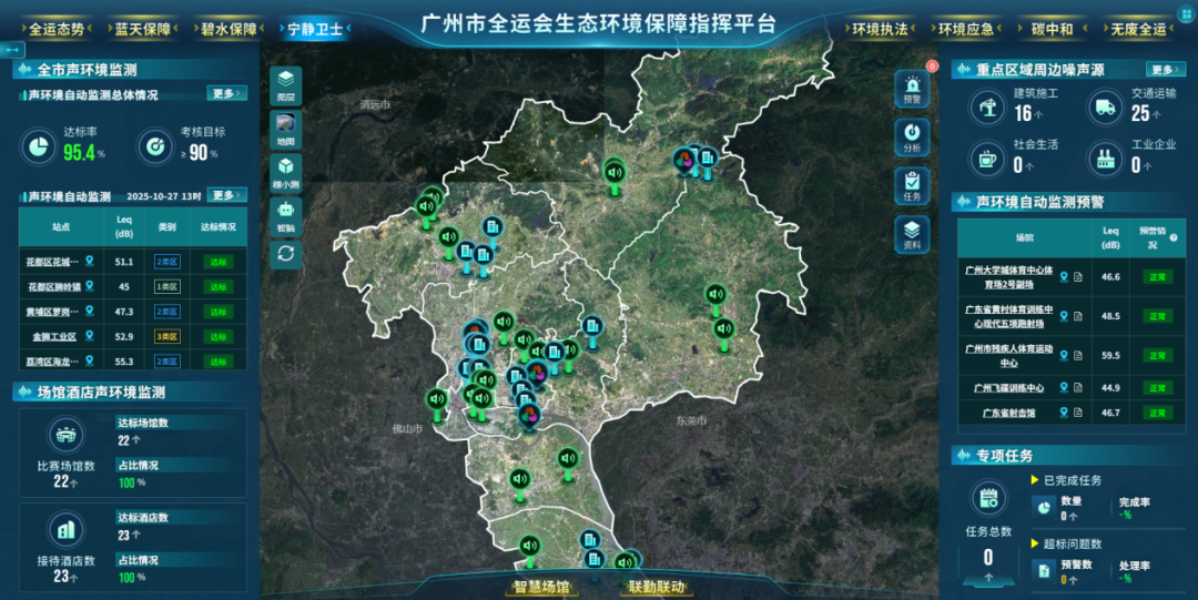 近日,广州市全运会生态环境保障指挥平台正式上线并投入运行。作为护航“绿色全运”的重要技术支撑,该平台将为实现赛事期间可视化、精准化、智能化生态环境监管提供坚实保障。