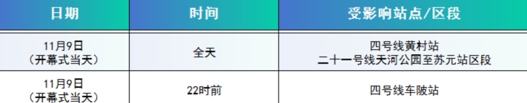 11月9日,十五运会正式开幕,广州地铁当天运营有所调整: