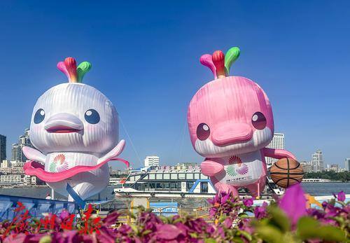 这次,两只小海豚分别以田径和篮球造型和市民朋友“见面”,萌趣可爱,既生动呼应赛事主题,又象征拼搏与团结的体育精神。两座装置高达15米,不仅具有强烈的视觉震撼力,也寓意“十五运会”的全运时刻,展现出赛事精神的传承与创新。