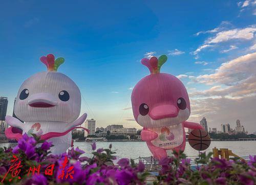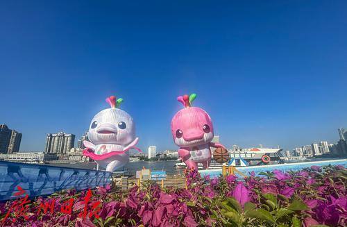 第十五届全国运动会开幕在即,广州的赛事气氛也日渐浓厚,城市景观焕然一新。近日,高达15米的十五运会吉祥物大型装置在白鹅潭畔亮相,作为十五运会和残特奥会广州赛区景观与氛围营造的重点项目,这一大型装置的亮相,既为全运会的到来注入热烈氛围,也为白鹅潭增添了青春与活力。