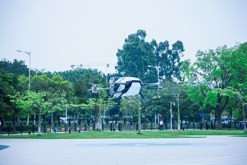 在广州番禺区小谷围岛上空,一架电动垂直起降飞行器缓缓升空,与传统岭南建筑镬耳墙形成跨越时空的“对话”;地面上,自动驾驶车辆穿梭往来,共同勾勒出未来出行的生动图景。