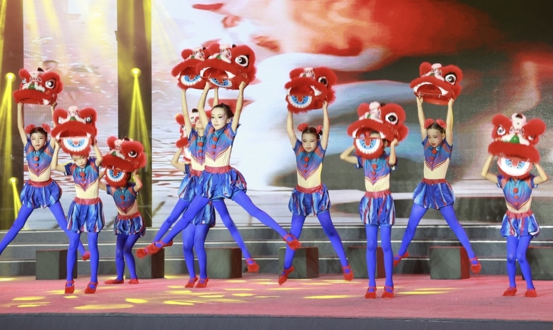 在第一篇章中,街舞《热力四射》率先登场,少年们用利落舞姿点燃全场。在第二篇章中,《粉墨花旦》里俏萌娃演绎国粹经典,小戏骨传承文化根脉,让京剧艺术的韵味在舞台上悄然流淌。在第三篇章中,小学部舞蹈团带来《奇狮妙想》,锣鼓喧天醒瑞狮,少年们以灵动舞姿再现雄狮的昂扬。在第四篇章中,少年合唱团演绎《菊花台》《想你的365天》,让歌声诉说四季流转中的诗意。