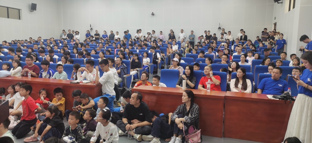 在科普报告环节,中国科学技术大学国家同步辐射实验室助理研究员谢治作了题为《追光逐日,迎接未来》的主题报告,深入浅出地介绍了同步辐射领域的前沿知识;中国科学院近代物理研究所副研究员蓝江山作题为《探索微观物质世界的奥秘》报告,带领大家走进粒子物理的微观世界,引发了听众的踊跃提问。 互动体验是本次活动的亮点。在实验秀上,高温超导磁悬浮、核孔膜超黑材料隐身等趣味实验轮番上演; 在“粒子特工训练基地”,孩子们通过游戏模拟重离子在加速器中的运动轨迹,在沉浸体验中理解重离子加速器的工作原理;创工坊里,孩子们在手工老师的指导下进行科学制作,进一步激发了他们对科学探索的热情。