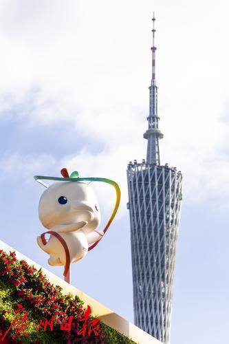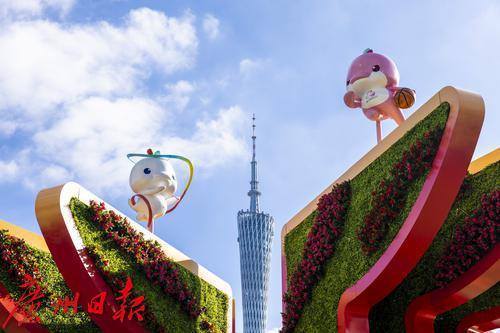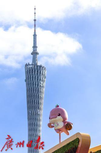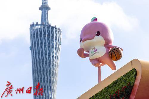 艺术体操“喜洋洋”和篮球“乐融融”与广州塔同框。