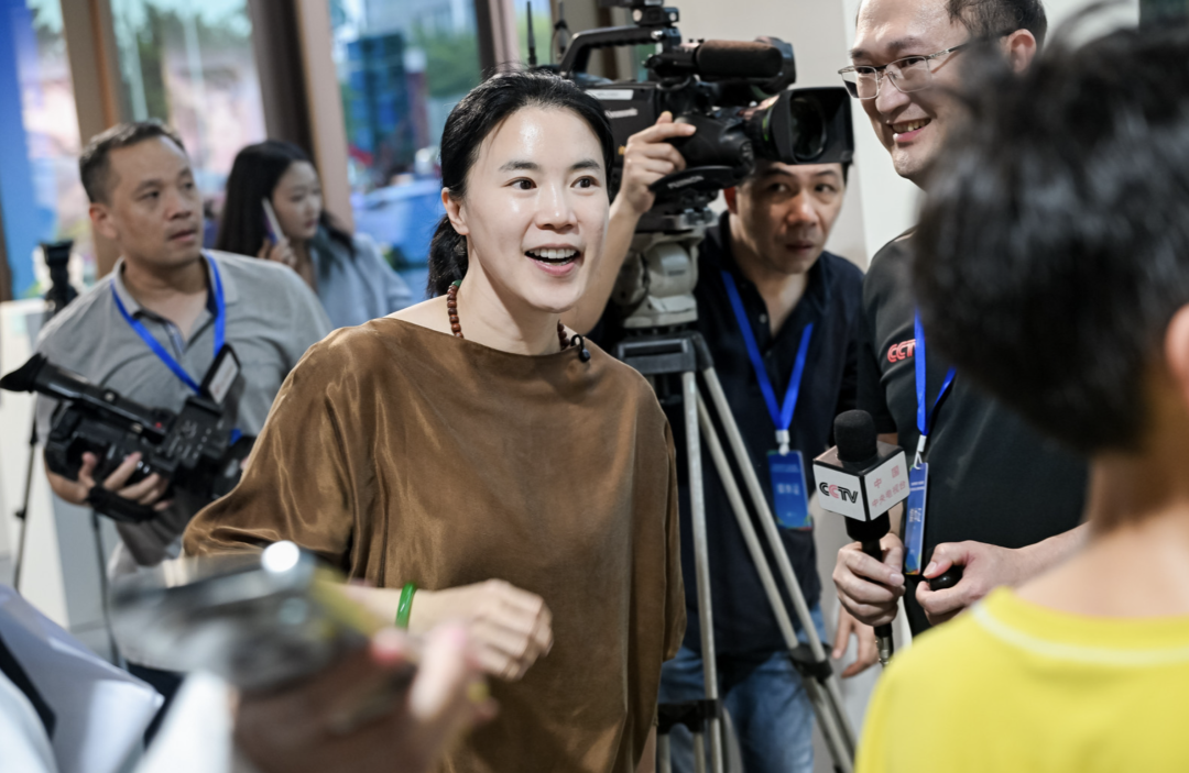 羽毛球世界冠军唐九红从赛场走向公益,她探讨了体育精神的延续与升华。“袁老师的《女娲补天》是一种修补与和谐的象征,而我从竞技场到公益路,是将冠军精神转化为社会力量。”