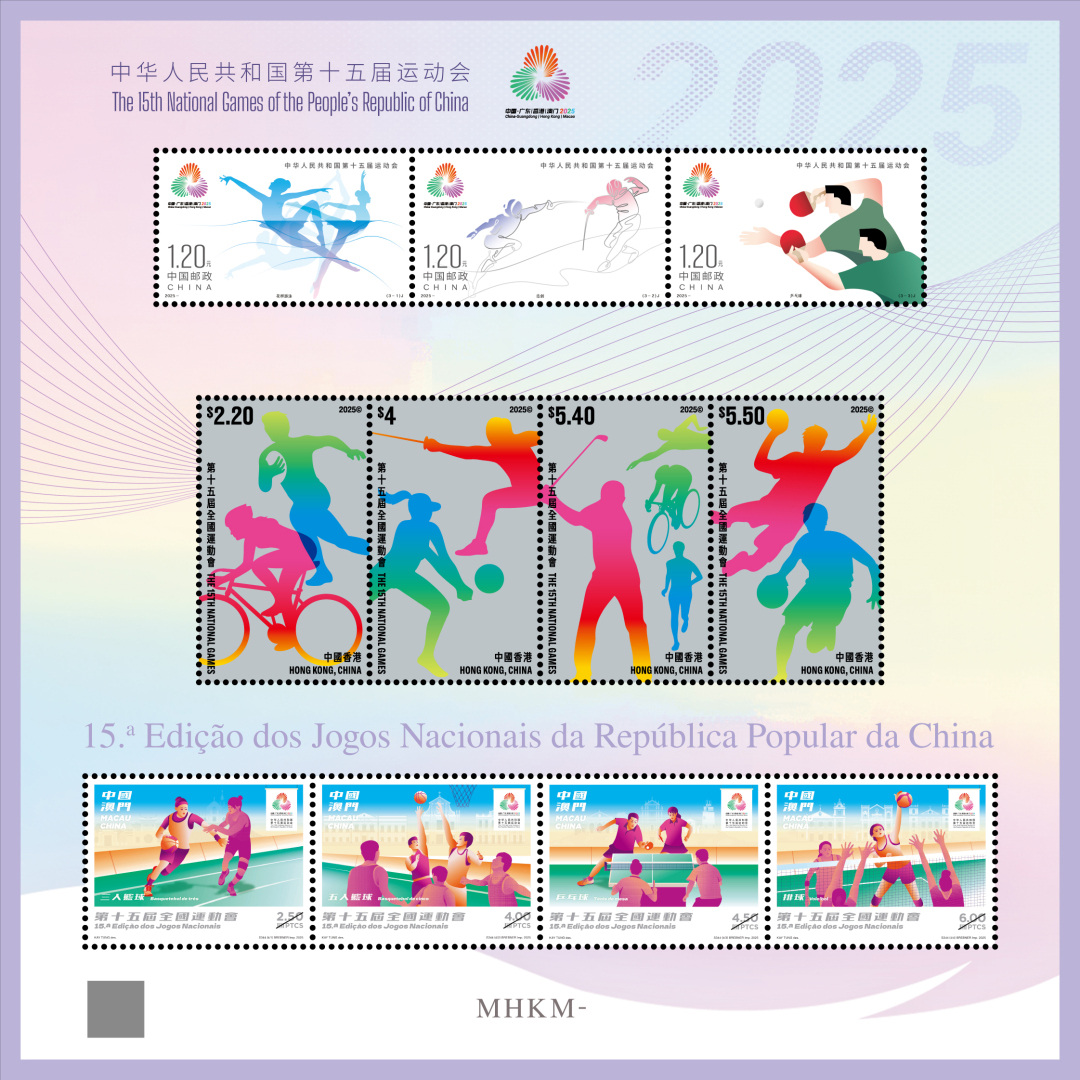 2025年11月9日,为庆祝中华人民共和国第十五届运动会开幕,十五运会广东赛区执委会和中国邮政集团有限公司联合主办《中华人民共和国第十五届运动会》纪念邮票首发仪式。该纪念邮票一套3枚,并首次同步发行涵盖内地、香港、澳门三地邮票元素的《中华人民共和国第十五届运动会》三地小全张1枚。