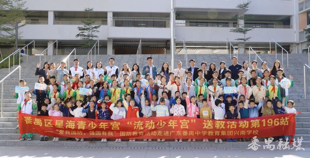 11月5日,番禺区星海青少年宫“流动少年宫”与广州市少年宫“星光计划”开展联合送教行动,走进广东番禺中学教育集团兴南学校。活动以“国防教育+艺术启蒙+心理关怀”为核心,通过“硬核军事体验+软性素养滋养”的创新模式,为该校师生带来一场全方位、沉浸式的素质教育盛宴,打造全方位育人新范式。