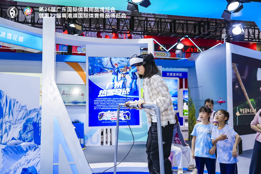 “妈妈你看,我滑到雪山底了!”一个小男孩兴奋地摘下VR眼镜,在花都展区的滑雪体验机前手舞足蹈。11月8日上午,第26届广东国际体育用品博览会暨第22届粤港澳国际体育用品博览会在万众瞩目中拉开帷幕。广州市花都区作为全省唯一的行政县区代表,在展会现场设立独立展区,以“广州潮北 花样花都”为主题,围绕“冰雪”“跳绳”“骑行”三大特色体育板块,精彩呈现体育发展成果。