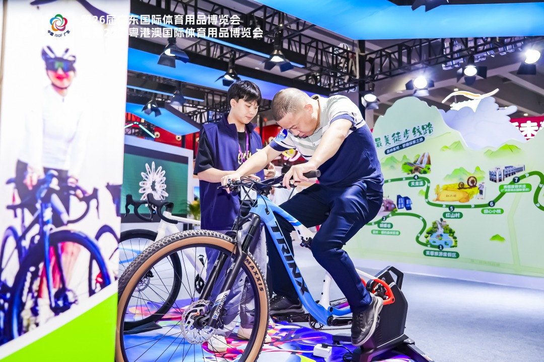 骑行体验区同样人气爆棚。三台“千里达”智能骑行台前,体验者们正奋力蹬踏,屏幕上实时显示着在花都“绿美观花道”的虚拟场景中的行进速度。“这个坡度太真实了!在骑行过程中我还可以‘零距离’打卡花都各个热门景点,让我迫不及待想去花都走一走看一看。”一位正在体验的骑行爱好者满头大汗却笑容满面。