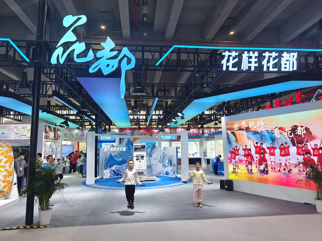 “这就是传说中的‘跳绳之都’!”带着孩子前来观展的刘女士一边录制视频一边感叹,“没想到能亲眼看到世界冠军的表演。”作为培育了52位世界跳绳冠军、打破20项世界纪录的“冠军摇篮”,花都区在展区特别设置了跳绳体验区,让普通观众也能在冠军指导下感受这项运动的魅力。