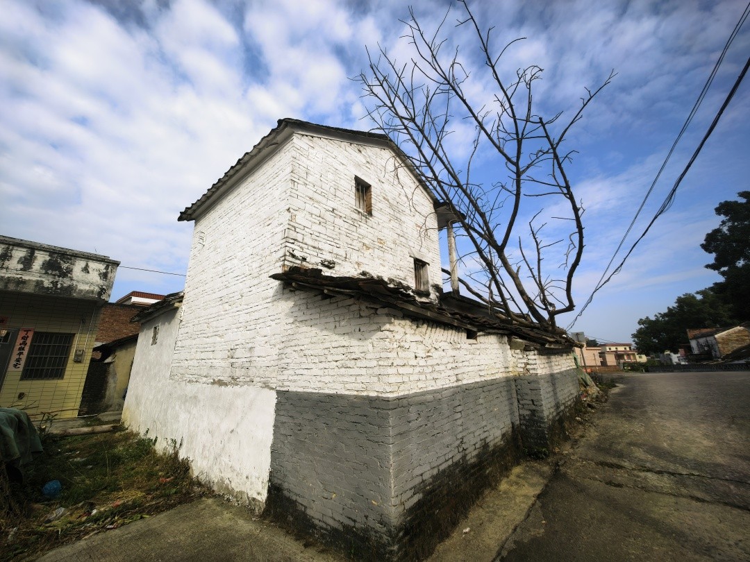 驱车沿县道X436北行,前往赤坳村村委会所在地。临近村口处,路稍蜿蜒,树渐密,两旁绿荫如盖,村里的白墙灰瓦在树叶的掩映间若隐若现,在阳光透过树叶洒下时光线的雕饰下,宛若一幅徐徐展开的岭南水墨画。此时,心头上的焦虑被柔和的绿意轻轻抚平。