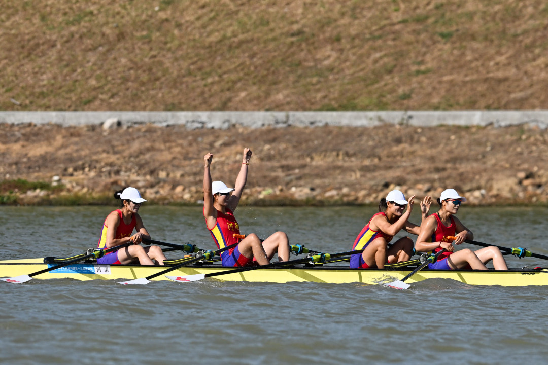 在女子四人双桨决赛A组中,广东队斩获一枚银牌,河南队收获该项目金牌。