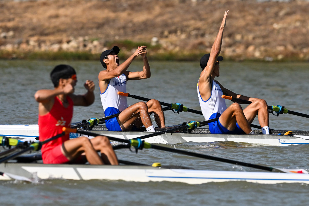 在赛艇比赛男子轻量级双人双桨决赛中,广东队再收获一枚银牌,辽宁队收获该项目金牌。