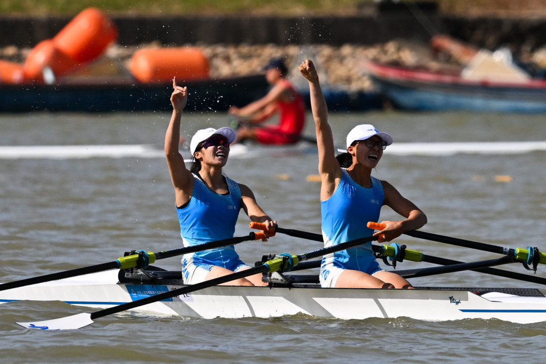在赛艇比赛女子轻量级双人双桨决赛中,广东队收获一枚银牌,收获该项目金牌的是浙江队。
