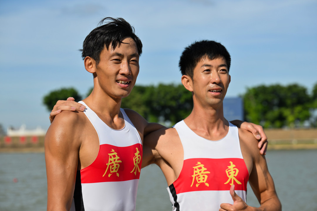 男子轻量级双人双桨决赛A,广东组合江旭克(左)、周学武(右)获得亚军。