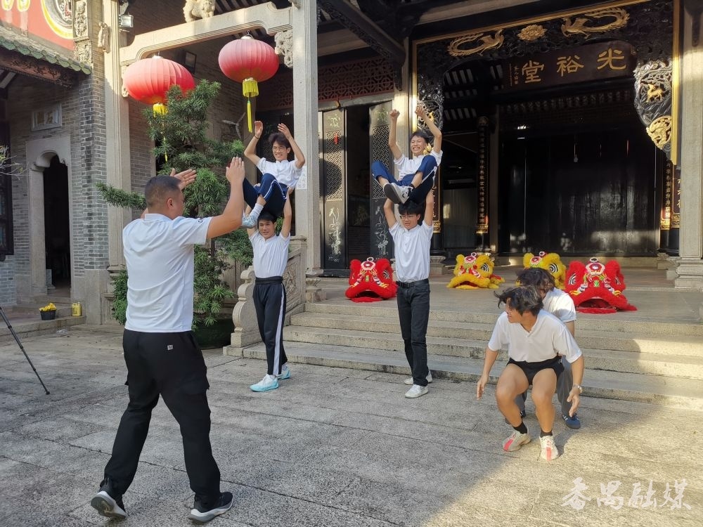 番禺区东环街蔡边精成龙狮凤体育总会成立于2012年,虽然只有12年历史,却已成为一支拥有国际级裁判教练员3名、国家级裁判教练员15名的专业团队。“7月份接到参演通知时,我们既兴奋又倍感压力。”龙狮队负责人蔡俊杰回忆道,“队员们基本都是在读学生,既要保证训练,又不能耽误学业。”