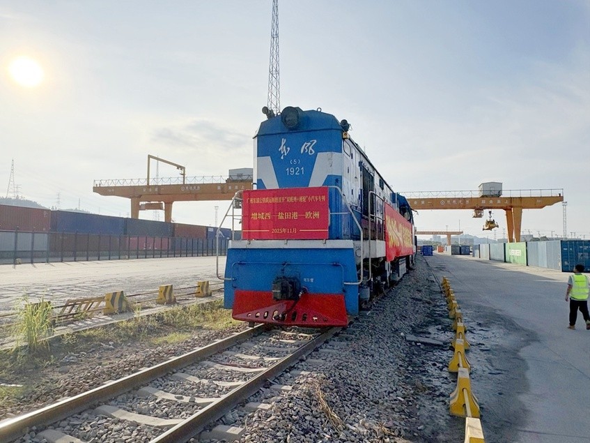 这是粤港澳大湾区开行的首趟海铁联运“双班列+班轮”模式专列,标志着国铁广州局广州物流中心联合深圳港物流集团、中铁特货共同打造的汽车出海“海铁联运”通道正式开通。增城西内陆港同步启动运营,“一港一策”战略再结硕果,为国产汽车出口开辟了一条更高效、更经济、更稳定的全新物流通道。