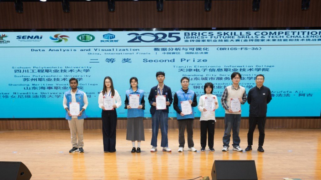 11月3-6日,在广东建院清远校区举行的2025金砖国家职业技能大赛数据分析与可视化赛项中国赛区国际总决赛中,国际生林坦·阿鲁法法·阿吉在建筑信息学院林培煜博士团队的指导下,获得二等奖。