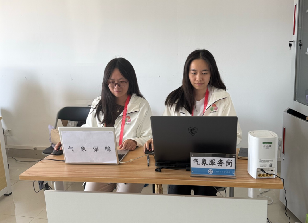 气象保障服务人员在广东国际划船中心内开展现场气象服务工作。 梁霈妍 摄
