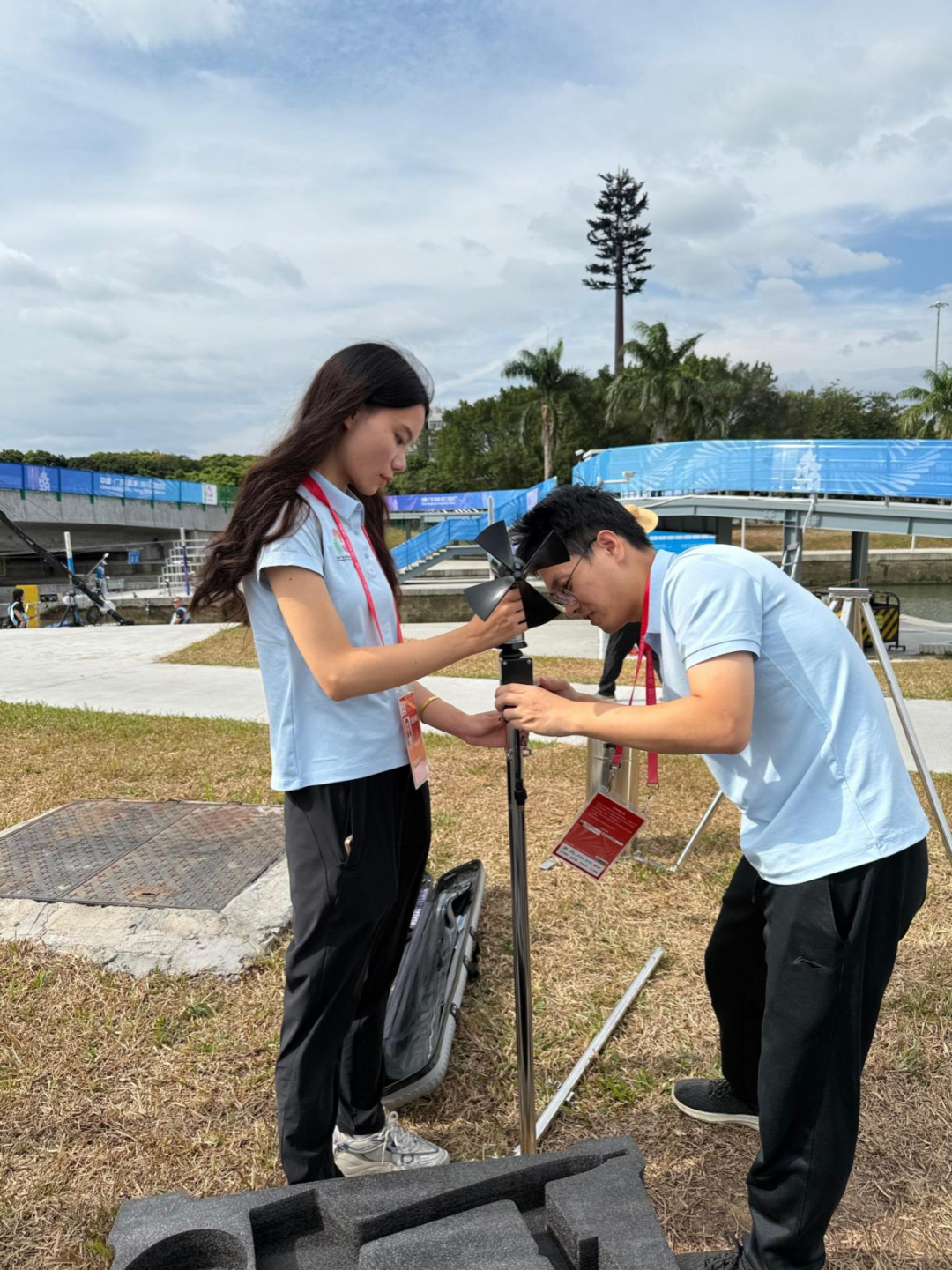 在广东国际划船中心架设移动气象站。 李欣韵 摄
