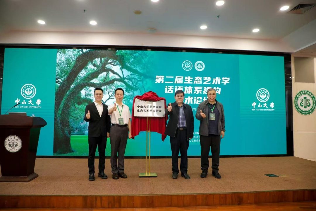 在论坛开幕式上,中山大学人文社会科学处陈诗诗副处长代表主办方致辞。她指出,生态艺术学是一门新兴的交叉学科,相关研究正日益成为回应全球生态危机、推动人与自然和谐共生的重要学术议题。教育部长江学者特聘教授、中华美学学会生态美学专业委员会主任、中山大学中国语言文学系与艺术学院双聘教授程相占在致辞中回顾了专委会自2018年成立以来在生态艺术领域开展的系列学术活动。程相占教授还介绍了生态艺术学的概念演进,以及近年来在国家社科基金等项目支持下所取得的理论突破。开幕式的另一项重要议程是“中山大学艺术学院生态艺术学实验室”成立揭牌仪式。该实验室由程相占教授担任负责人,将借鉴实验美学、神经美学、心理学、认知科学与生态学等多学科交叉方法,系统研究生态艺术的创作、接受、评价与疗愈机制,以推动生态艺术学建构走向科学化,助力构建具有中国特色的生态艺术学话语体系。